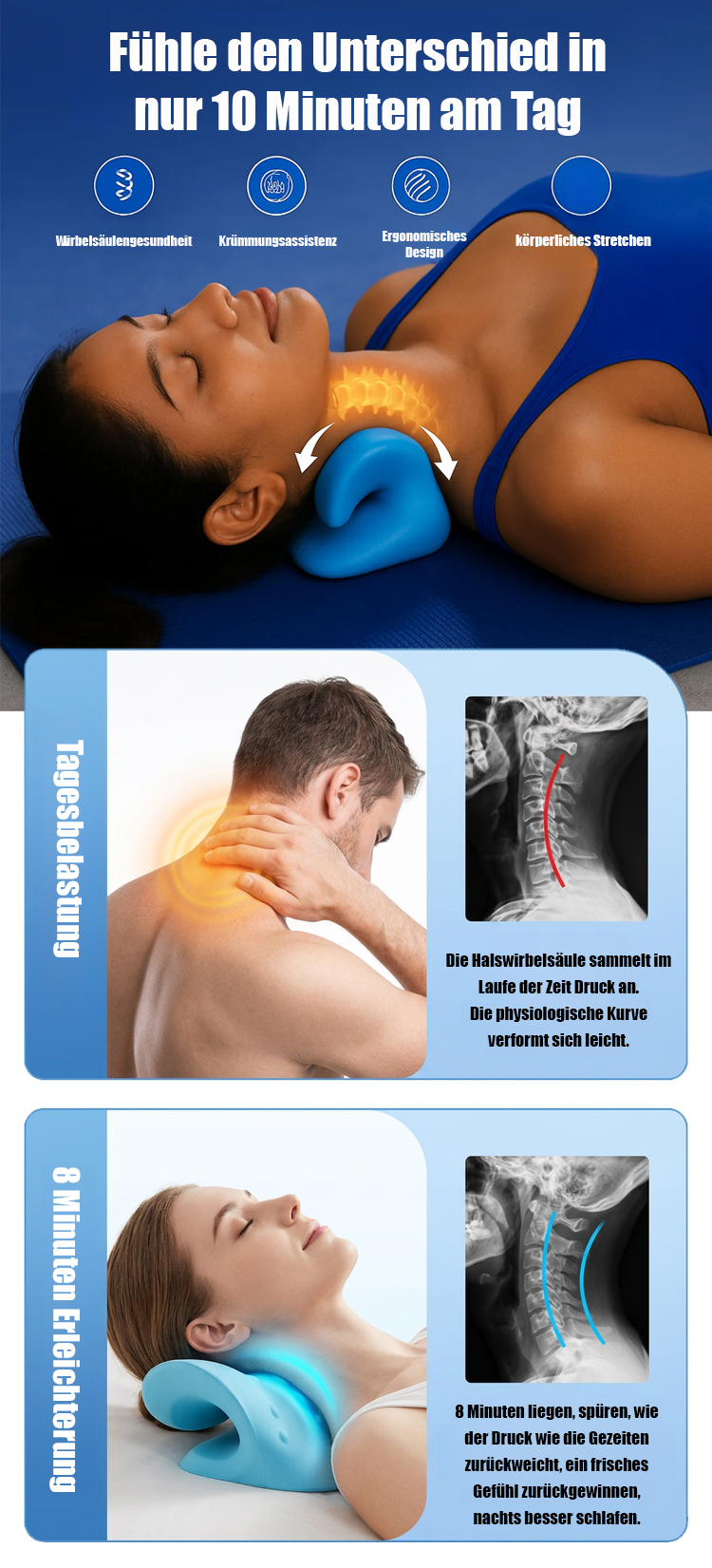 【Schlafen für eine gesunde Halswirbelsäule】C-förmiges Halswirbelsäulen-Massage-Korrekturkissen