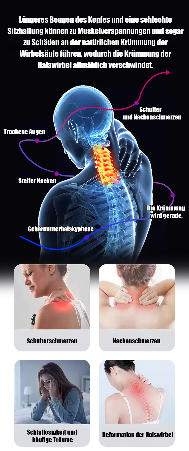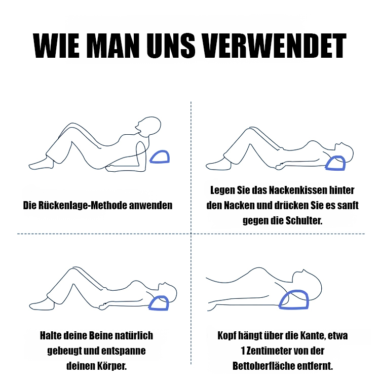 Lindert schmerzhafte Nacken- und Kopfschmerzen in Minutenganz bequem von zu Hause, ohne teure Therapien.