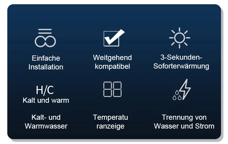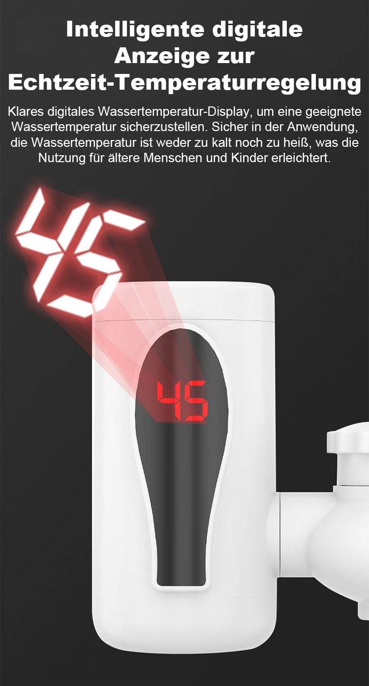 Dreisekunden-Sofortheizung intelligenter Wasserhahn mit digitaler Anzeige.