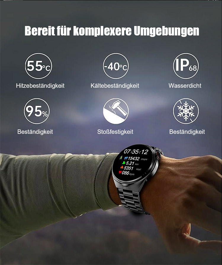 Deutsche & US-Technologie 🇩🇩🇺🇸|Kein Pieksen mehr 🚫💉|Schmerzfreie Blutzuckermessung ✅|Über 1000 KI-Funktionen 🤖|500+ Sportmodi 🏃|50m Wasserdicht 🌊